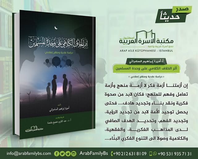 📖 صدر حديثاً عن مكتبة الأسرة العربية كتاب بعنوان: #أثر_الخلاف_الكلامي_على_وحدة_المسلمين (دراسة عقدية ومنهج إصلاحي) للكاتبة #أميرة_إبراهيم_السامرائي.