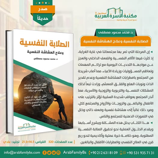 ◂ هذا الكتاب يحلل هذه المشكلة ويشرح أسبابها ويقدم الحلول العملية نحو تحقيق الصلابة النفسية المطلوبة، وهو خلاصة خبرة عملية وأكاديمية لنحو ربع قرن في العلاج النفسي واضطرابات الأطفال والبالغين.