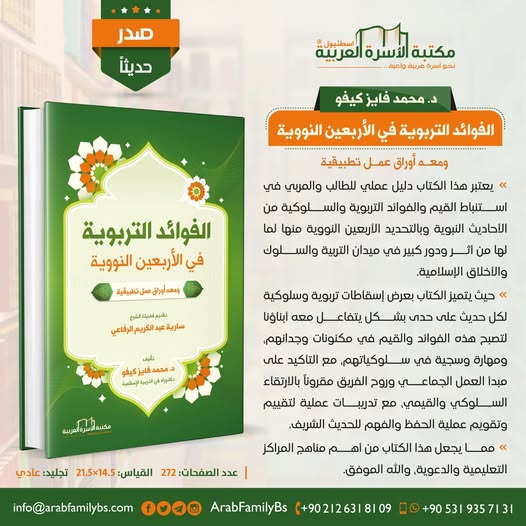 يعتبر هذا الكتاب دليل عملي للطالب والمربي في استنباط القيم والفوائد التربوية والسلوكية من الأحاديث النبوية وبالتحديد الأربعين النووية منها لما لها من أثر ودور كبير في ميدان التربية والسلوك والأخلاق الإسلامية.