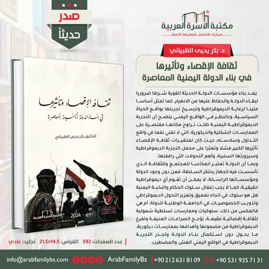 صدر حديثاً📚 #مكتبة_الأسرة_العربية كتاب #ثقافة_الإقصاء_وتأثيرها في بناء الدولة اليمنية المعاصرة المؤلف الدكتور #بكر_يحيى_الظبياني 🖋هذا الكتاب: يعد بناء مؤسسات الدولة الحديثة القوية شرطا ضروريا لبقاء الدولة والحفاظ عليها من الانهيار، كما تمثل أساسا متينا لرعاية الديموقراطية وترسيخ تجربتها بواقع الحياة السياسية، وبالنظر في الواقع اليمني يتضح أن التجربة الديموقراطية اليمنية ظلت تراوح مكانها مقتصرة على الممارسات […]