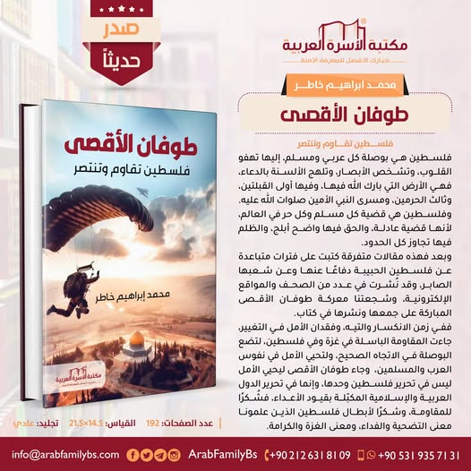 #صدر_حديثاً📚 #متوفر في #معرض_اسطنبول_الدولي الثامن للكتاب العربي جناح /A30/ #مكتبة_الأسرة_العربية كتاب: #طو@فان_الأقص@ى – فلس@طين تقاوم وتنتصر تأليف : #محمد_ابراهيم_خاطر 🖋هذا الكتاب: فلسطين هي بوصلة كل عربي ومسلم، إليها تهفو القلوب، وتشخص الأبصار، وتلهج الألسنة بالدعاء، فهي الأرض التي بارك الله فيها، وفيها أولى القبلتين، وثالث الحرمين، ومسرى النبي الأمين صلوات الله عليه. وفلسطين هي قضية […]