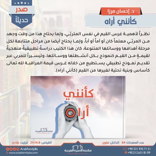 نظراً لأهمية غرس القيم في نفس المتربّي، ولِما يحتاج هذا من وقت وجهد من المربّي معلماً كان أو أما أو أبا، ولِما يحتاج أيضا من مراحل متتابعة لكل مرحلة أهدافها ووسائلها المتنوعة، كان هذا الكتيب دراسةً تطبيقيةً منهجيةً لقيمةٍ من القيم كنموذج بكل أنشطتها ووسائلها، وتيسيراً للمربي عبر تقديم نموذج تطبيقي يستطيع من خلاله غرس قيمة المراقبة لله تعالى كأساس وبنية تحتية لغيرها من القيم ( كأنني أراه)، والله الموفق لكل خير.