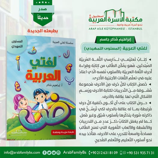 ◂ كِتابٌ تَعليّمي لدَارسي اللُّغة العَربيِّة المُبتدئين، فَهو يُمكِّن الطَّالب من كِتابَة وقِراءة أَحرف اللُّغة العربيَّة بالأسلوب نَفسه الَّذي اعتادَ عليه في تعلّم اللُّغات الأجنبَية الأُخرى.