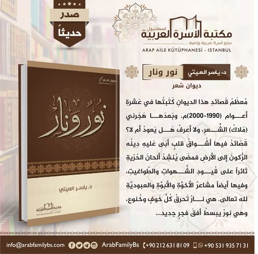 📚 صدر حديثاً عن مكتبة الأسرة العربية ديوان شعري بعنوان: #نور_ونار للشاعر الدكتور #ياسر_العيتي.