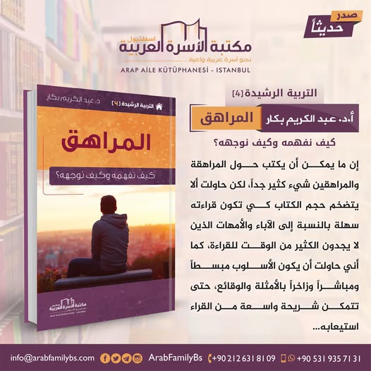 📖 ولفهم هذه المرحلة العمرية الدقيقة فقد صدر عن مكتبة الأسرة العربية كتاب بعنوان: #المراهق ( كيف نفهمه؟ وكيف نوجهه؟ ) للكاتب الدكتور #عبد_الكريم_بكار.