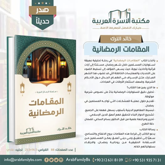 مكتبة الأسرة العربية #صدر_حديثاً المقامات الرمضانية خالد الترك 📖 عن الكتاب: يأخذنا كتاب “المقامات الرمضانية” في رحلة تحليلية عميقة لسلوكيات المسلمين خلال شهر رمضان، مستندًا إلى آيات قرآنية وأحاديث نبوية، حيث يسعى المؤلف إلى تسليط الضوء على التحديات والممارسات الخاطئة التي قد تشوب هذا الشهر المبارك، مثل الإسراف في الطعام، الجدال حول الأحكام الشرعية، وضعف […]
